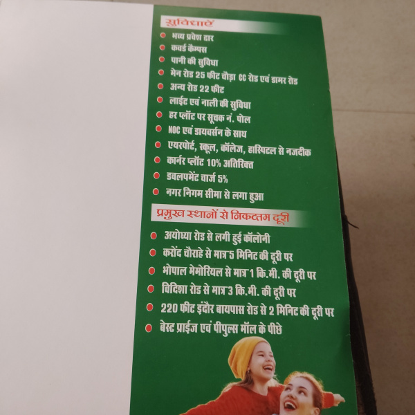 New project open peoples Mall ke piche Mittal college se 1 kilometer ki duri per Vidisha Highway se 2 kilometer ki duri per bersiya Highway se 2 kilometer ki duri per covered campus project all facility ke sath Ayodhya Bypass se 2 kilometer ki duri per aapki prime location per plot uplabdh hai